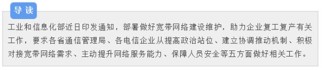 工信部部署做好寬帶網絡建設維護助力企業復工復產工作