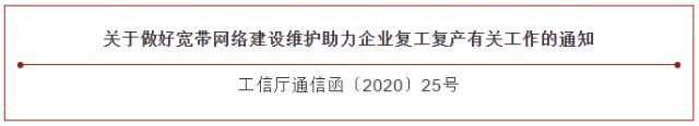為認真貫徹落實習近平總書記關于新冠肺炎疫情防控工作重要指示精神和黨中央、國務院決策部署,有序推進疫情防控和企業復工復產,現就做好寬帶網絡建設維護,助力企業復工復產有關工作通知如下: