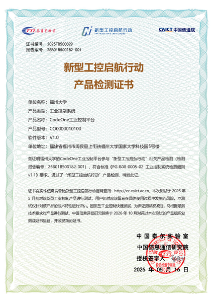 經(jīng)過中國信息通信研究院集中測試,福州大學工業(yè)自動化控制技術與信息處理福建省高校重點實驗室自主研發(fā)的CodeOne工業(yè)控制平臺,憑借圖形無代碼編程架構與多品牌PLC無縫兼容的核心優(yōu)勢,順利通過本次“新型工控啟航行動”產(chǎn)品測試。目前CodeOne平臺已在新能源、電力、化工、機械、紡織、家具、電池、市政等多個行業(yè)實現(xiàn)規(guī)模化應用,成功替代國外工控系統(tǒng),推動國產(chǎn)裝備在汽車制造、新能源等高端技術領域的自主化突破。