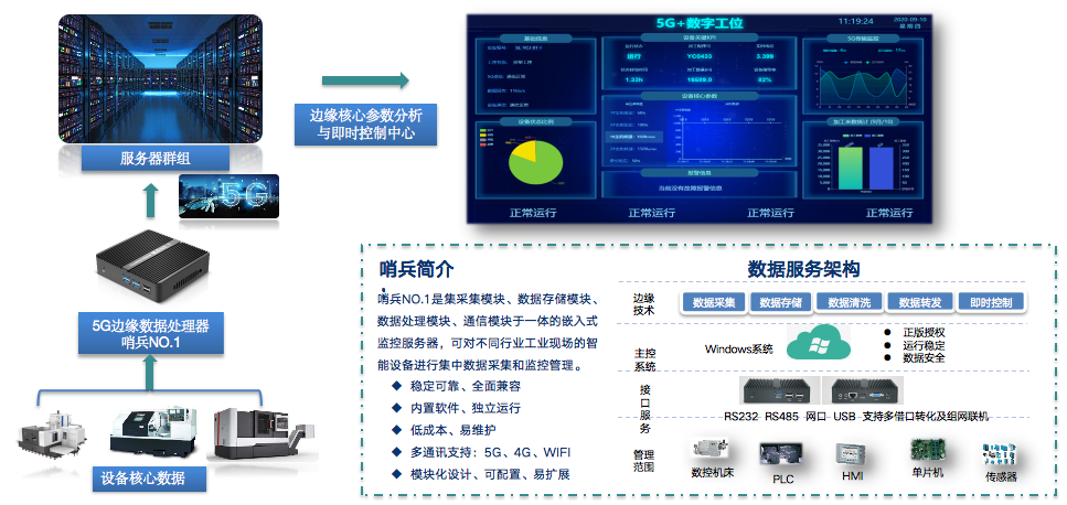 5G邊緣數據處理服務器-哨兵NO.1是一款集成了遠程管理服務器、數據存儲模塊、采集系統、邊緣數據處理模塊、5G網絡傳輸模塊的綜合集成邊緣數據處理設備;具備邊緣數據識別、數據清洗、數據模型比對、設備程序識別、反向調整控制能力,擁有多種接口,支持多種協議,運行穩定可靠、兼容全面、易擴展,硬件成本低,支持遠程維護,方便配置管理。