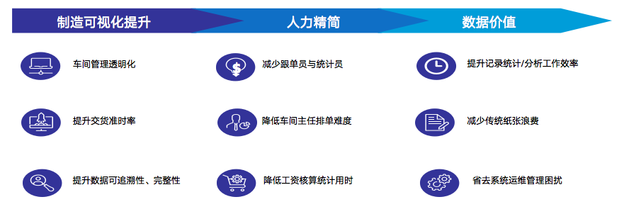 制造數據的可視化為運營決策提供大量的數據支撐,并為管理者提供有效的 管理實時工具,降低管理難度,提升管理效率。