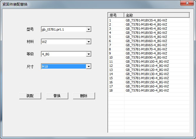 緊固件裝配替換功能,主要用于緊固件的裝配以及替換,其設(shè)計(jì)界面如下: