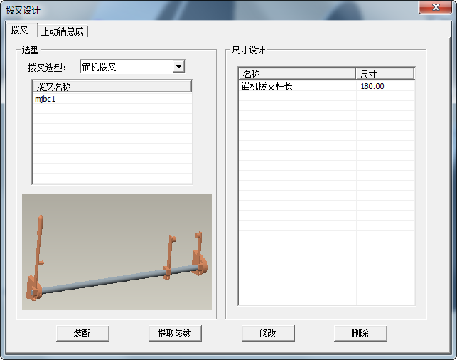 撥叉設(shè)計(jì)中包含撥叉以及止動銷總成兩部分,撥叉中又細(xì)分為錨機(jī)撥叉以及系泊撥叉;撥叉設(shè)計(jì)的初始界面如下: