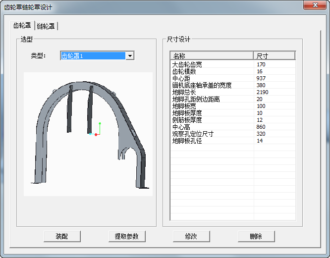 齒輪罩以及鏈輪罩均通過參數(shù)化方式定義結(jié)構(gòu)模型,其設(shè)計(jì)界面如下: