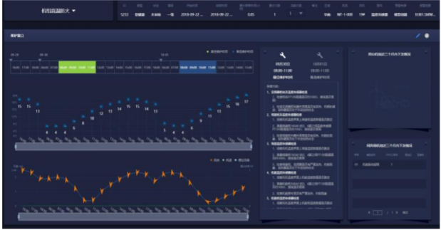 開展設(shè)備運行現(xiàn)場精益運維管理,對現(xiàn)場運維期的業(yè)務(wù)進(jìn)行細(xì)化,將數(shù)據(jù)分析、資產(chǎn)管理、故障預(yù)測和診斷、設(shè)備KPI管理、物資保障和作業(yè)窗口等集中在一起,作為基礎(chǔ)數(shù)據(jù),結(jié)合現(xiàn)場運維策略,將現(xiàn)場工作任務(wù)進(jìn)行綜合管理,降低設(shè)備運維成本(減小備品備件損失和更換頻次)、降低設(shè)備故障頻次和停機時間,提高設(shè)備可利用率及收益。其中,重點實現(xiàn)機組故障自診斷分析,推送合適作業(yè)窗口、備件位置、數(shù)量信息及故障解決方案;實現(xiàn)對現(xiàn)場KPI的管理,給現(xiàn)場運維計劃提供數(shù)據(jù)支撐。以上信息均以工單的形式下發(fā)至設(shè)備現(xiàn)場,解決了現(xiàn)有的工單不能自動創(chuàng)建、備件位置和數(shù)量查詢繁瑣等問題,改善了故障處理效率,降低了設(shè)備損失及運維成本。