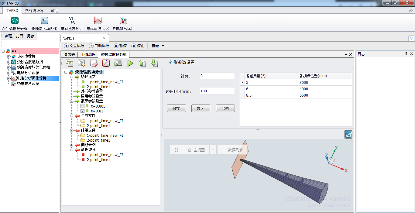 TAPRO是源于航天、立足質量、服務軍民的通用APP,其熱/電分析優化功能可為航空航天飛行器熱防護和電磁窗口設計,以及民用建筑保溫、氣象雷達罩等設計優化提供支撐。目前已在航天器設計單位和電信設計單位應用。TAPRO通過簡化輸入和自動處理結果,將典型高速飛行器熱電分析效率提升4~5倍。通過算法和設計模式固化,降低人為失誤,提高設計準確性。同時,APP內置智能優化算法,將重復性工作交給計算機,自動推薦最優方案,促進傳統熱電設計模式轉變。