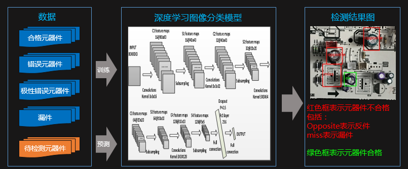基于5G大帶寬技術,生產線機器視覺檢測直接以無線的方式部署4K清晰度以上的超高清工業攝像頭,避免了布線成本以及對產線的影響。同時采集的產品高清圖像通過極低的時延傳輸至AI平臺,通過人工智能技術的深度學習圖像分類模型進行計算,對產線上的元器件進行實時自動分析,實現產品的智能實時檢測。系統實現自動判斷標注,杜絕人工檢測過程的漏檢錯檢問題;同時,所有單元無線組網,可按需、快速、靈活組合。
