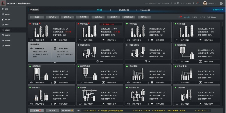 基于工業知識庫,實現調度指揮在線閉環。提升協同指揮效率,提高科學決策水平。支撐全廠調度指揮應用,實現基于管理知識的調度智能化。生產監控為運行、進出廠、罐區、物料平衡等敏感環節提供高效監控工具。預警告警為運行人員提供生產報警、生產預警、智能處理等信息?;谡{度指令生成規則,對調度指令的編制、審核、發布、執行與反饋過程實現在線閉環管理。