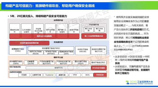 8月30日下午,在2020工業互聯網大會“工業互聯網安全”主題論壇上,華為技術有限公司安全領域解決方案首席架構師王雨晨以《工業互聯網安全體系建設——半導體高端制造業安全實踐》為題作演講,分享了華為在工業互聯網安全體系建設方面的經驗,以及華為在半導體高制造行業的應用實踐。