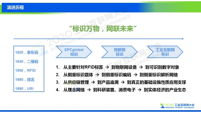 在2020工業互聯網大會“工業互聯網標識”主題論壇上,工業互聯網產業聯盟標識工作組主席劉陽以《標識萬物,網聯未來——工業互聯網標識解析的十大趨勢》為題,分享了工業互聯網產業聯盟標識工作組就工業互聯網標識解析未來發展趨勢作出的的研判。