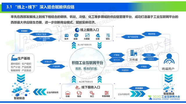 專家說 “積微物聯未來將圍繞工業互聯網的定義,去發展整個生態圈,為生產企業、制造企業、倉儲物流、終端用戶、分銷商等等這個鏈條的所有角色去打造一些更體現智能制造的APP,去做一些業務管理體系的標準化,增強一些物聯網基礎能力,包括把積微物聯已經成型的驗證過產品體系輸出給全行業,集成這樣的服務能力,再加上在線協同,去共建共享一個產業的生態圈。” 以下是演講PPT 敬請閱讀