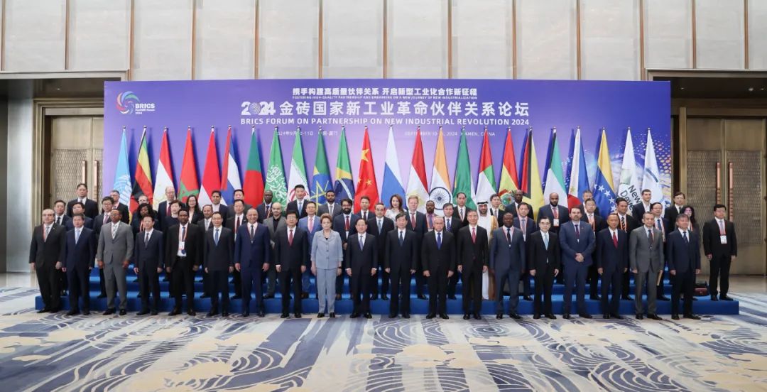 9月10日,2024金磚國家新工業革命伙伴關系論壇在福建省廈門市開幕。工業和信息化部部長金壯龍,福建省委書記、省人大常委會主任周祖翼,新開發銀行行長迪爾瑪·羅塞夫,古巴工業部部長埃洛伊·馬丁內斯,摩洛哥工業與貿易大臣利雅德·梅祖爾,津巴布韋工業和商務部部長曼加利索·恩德洛武,埃塞俄比亞工業部國務部長塔雷肯·布盧勒塔,圭亞那國家數據管理局局長克里斯托弗·迪恩,委內瑞拉人民政權工業和國內生產部副部長胡安·克維多,埃及駐華大使阿西姆·哈奈菲,福建省委常委、廈門市委書記崔永輝出席并致辭。福建省省長趙龍出席論壇。工業和信息化部副部長辛國斌、福建省副省長林瑞良共同主持。