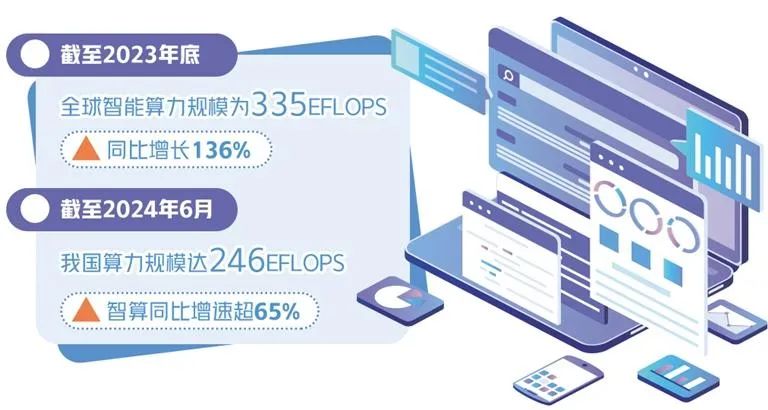 中國移動副總經理李慧鏑表示,人工智能是工業革命級的重大創新,AI技術突破和應用擴散呈現顯著的規模效應,加速經濟社會從“+AI”向“AI+”轉變。其中,AI技術能力上的規模效應,推動訓練算力爆發式增長;AI經濟效益上的規模效應,將帶來遠超訓練的推理算力需求,萬卡、十萬卡智算集群的算力組網、算電協同和低碳發展等成為創新方向。 我國算力總規模增長迅速,但從結構上看,高性能算力占比有待提升。趙志國強調,發展算力產業還需統籌好“量的增長”和“質的提升”。 中國信息通信研究院云計算與大數據研究所總工程師郭亮在接受經濟日報記者采訪時介紹,以生成式人工智能為代表的人工智能應用、大模型訓練等新需求、新業務的崛起,推動全球智算規模呈現高速增長態勢。據測算,截至2023年底,全球智能算力規模為335EFLOPS,同比增長達136%,增速遠超算力整體規模增速。 我國智能算力占比也顯著增加,智算中心集聚分布。據中國信通院測算,截至2023年底,智能算力規模占整體算力規模的增例近30%,增效明顯。國家及地方層面積極推進智算中心建設,北京、廣東等多地提出2025年智算規模目標。從區域分布上來看,智算中心呈集群建設趨勢,過半分布在我國東部地區。 《人工智能算力高質量發展評估體系報告》認為,我國算力發展仍面臨算力供給不足,供需匹配不平衡;算力智能水平較低,難以滿足多元應用場景;算力面臨能源考驗,節能降碳刻不容緩;多樣化算力需求提升,普適普惠水平較低;供應鏈完備性不足,生態構建待完善;性能評價簡單,算力實測性能欠缺等問題,亟需算力產業由“量”向“質”加速高質量發展。 對此,浪潮云海首席科學家張東分析,高質量算力應具備高算效、高智效、高碳效、可持續、可獲得、可評估等特征。其中,高算效是看整體能提供多少算力,高智效則是要用最小的算力支撐更高的智力水平。公開數據顯示,傳統模式下的智算中心GPU利用率平均數值低于30%,高算效就是要破解算效水平不高、算力資源利用率較低等問題。當前大模型發展百花齊放,大模型的智能涌現能力大幅提升,但是現有大模型模算效率普遍不高,在算力供需矛盾凸顯的當下,提升模算效率,以更低算力實現更高智能是智效水平提升的核心目標。