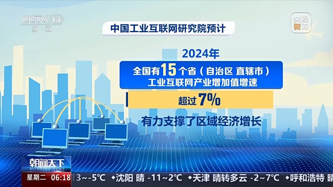中國工業互聯網研究院預計,2024年全國有15個省(自治區、直轄市)工業互聯網產業增加值增速超過7%,有力支撐了區域經濟增長。
