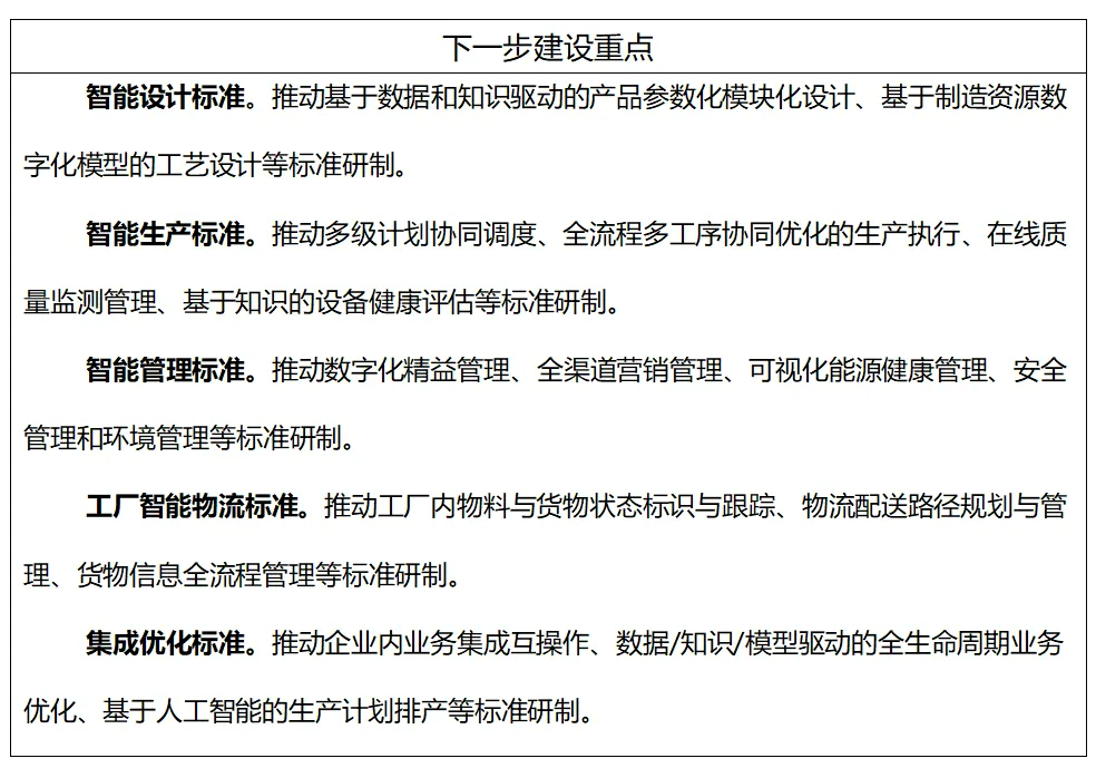 到2026年,制修訂100項(xiàng)以上國家標(biāo)準(zhǔn)、行業(yè)標(biāo)準(zhǔn),構(gòu)建適應(yīng)新型工業(yè)化發(fā)展的智能制造標(biāo)準(zhǔn)體系。加快制定智能檢測、智能物流等智能裝備標(biāo)準(zhǔn),研發(fā)設(shè)計(jì)、生產(chǎn)制造等工業(yè)軟件標(biāo)準(zhǔn),智能設(shè)計(jì)、智能管理等智能工廠標(biāo)準(zhǔn),供應(yīng)鏈建設(shè)、供應(yīng)鏈運(yùn)營等智慧供應(yīng)鏈標(biāo)準(zhǔn),數(shù)字孿生裝備、人工智能工業(yè)應(yīng)用、工業(yè)數(shù)據(jù)流通等智能賦能技術(shù)標(biāo)準(zhǔn),網(wǎng)絡(luò)協(xié)同制造、產(chǎn)銷一體化運(yùn)營等智能制造新模式標(biāo)準(zhǔn),工業(yè)無線網(wǎng)絡(luò)、工業(yè)網(wǎng)絡(luò)融合等工業(yè)網(wǎng)絡(luò)標(biāo)準(zhǔn),探索標(biāo)準(zhǔn)研制新方法,固化成功經(jīng)驗(yàn)和創(chuàng)新成果,形成典型場景系統(tǒng)解決方案標(biāo)準(zhǔn),引導(dǎo)企業(yè)應(yīng)用標(biāo)準(zhǔn)指導(dǎo)實(shí)踐,構(gòu)建企業(yè)智能制造標(biāo)準(zhǔn)體系,推動(dòng)智能制造高質(zhì)量發(fā)展。
