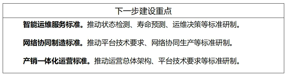 大規(guī)模個(gè)性化定制標(biāo)準(zhǔn)主要包括通用要求、需求交互要求、設(shè)計(jì)要求、生產(chǎn)要求等標(biāo)準(zhǔn);智能運(yùn)維服務(wù)標(biāo)準(zhǔn)主要包括通用要求、數(shù)據(jù)接口、狀態(tài)監(jiān)測、故障診斷、壽命預(yù)測、運(yùn)維決策等標(biāo)準(zhǔn);網(wǎng)絡(luò)協(xié)同制造標(biāo)準(zhǔn)主要包括平臺(tái)技術(shù)要求、資源模型要求、協(xié)同經(jīng)營管理、網(wǎng)絡(luò)協(xié)同設(shè)計(jì)、網(wǎng)絡(luò)協(xié)同生產(chǎn)等標(biāo)準(zhǔn);產(chǎn)銷一體化運(yùn)營主要包括運(yùn)營總體架構(gòu)、平臺(tái)技術(shù)要求、數(shù)據(jù)分類規(guī)范等標(biāo)準(zhǔn);其他主要包括上述四類以外的智能制造新模式的通用要求和服務(wù)交付等標(biāo)準(zhǔn)。