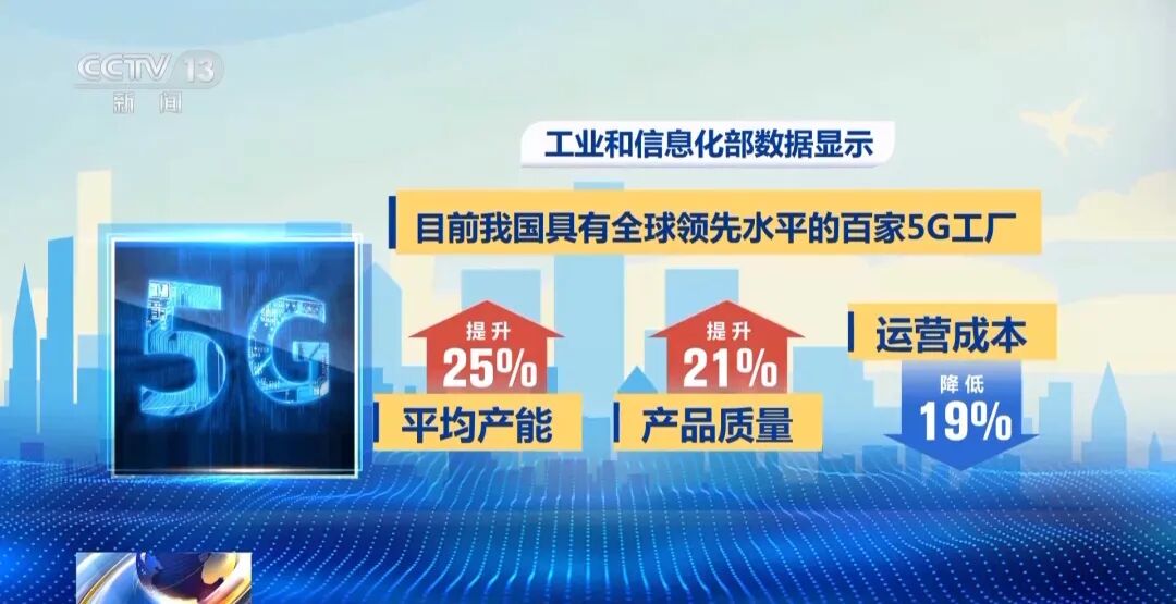 工業和信息化部數據顯示,目前我國具有全球領先水平的百家5G工廠,平均產能提升了25%,產品質量提升了21%,運營成本降低19%。