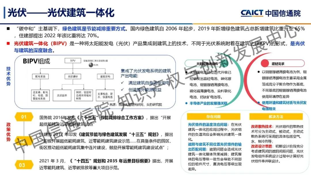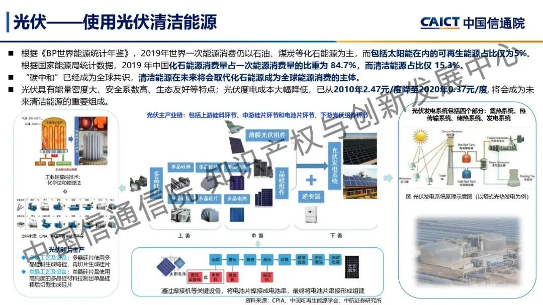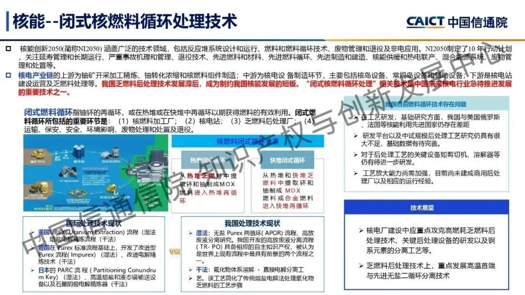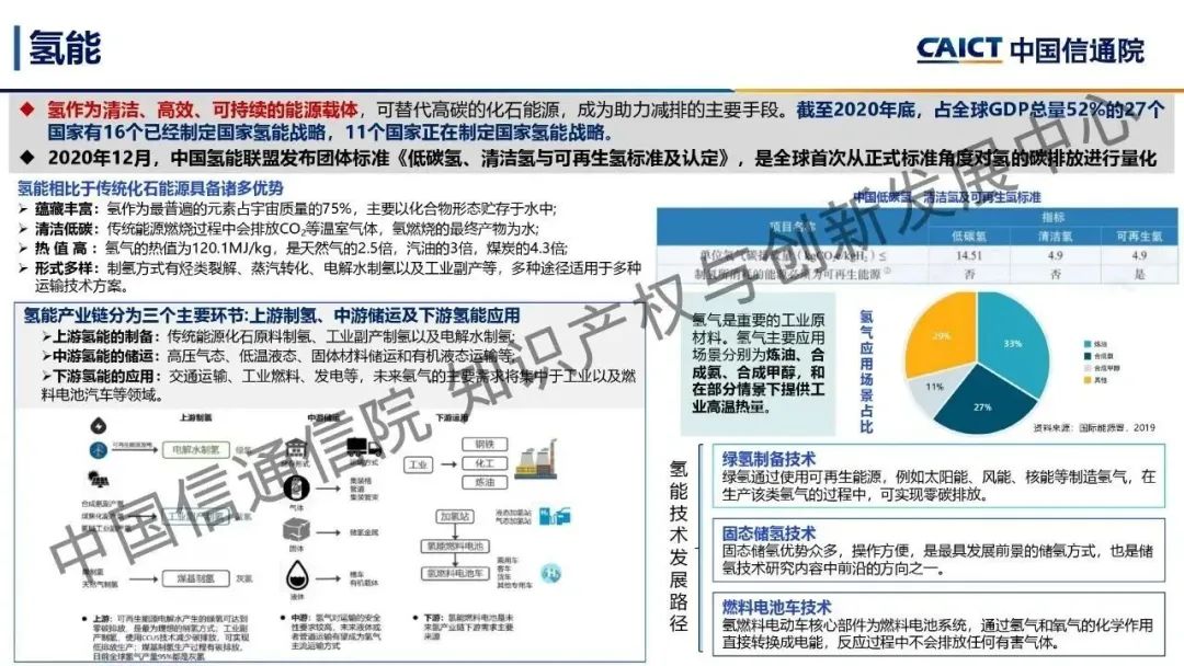 本期為您帶來由中國信通院知識產(chǎn)權(quán)與創(chuàng)新發(fā)展中心司法鑒定部副主任閆坤分享的《雙碳前沿科技創(chuàng)新——綠色技術(shù)》。能源領(lǐng)域是實現(xiàn)“雙碳”目標的關(guān)鍵,通過對傳統(tǒng)煤炭能源領(lǐng)域和光伏、風(fēng)能、核能及氫能等綠色能源領(lǐng)域的前沿技術(shù)進行研究及分析,了解了能源領(lǐng)域的前沿技術(shù)發(fā)展現(xiàn)狀及技術(shù)創(chuàng)新突破。煤炭領(lǐng)域的煤氣化技術(shù)、光伏領(lǐng)域的顆粒硅生產(chǎn)技術(shù)和光伏建筑一體化技術(shù)、風(fēng)能領(lǐng)域的海上漂浮式風(fēng)電技術(shù)、核能領(lǐng)域的閉式核燃料循環(huán)處理技術(shù)、氫能領(lǐng)域的氫制備和氫氣儲運技術(shù)是未來能源領(lǐng)域的重要前沿技術(shù),通過對這些技術(shù)的創(chuàng)新與突破,能夠推動能源領(lǐng)域碳中和路徑健康高速發(fā)展。