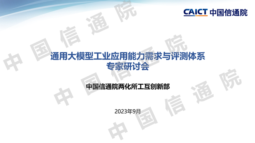 2023年9月21日,由中國信通院兩化所主辦的“通用大模型工業(yè)應(yīng)用能力需求與評測體系”專家研討會(huì)在線上成功舉辦。參加會(huì)議的有百度、華為、騰訊、羚羊工業(yè)互聯(lián)網(wǎng)、樹根互聯(lián)、智昌科技、復(fù)旦大學(xué)、阿里云、北京通用人工智能研究院等相關(guān)機(jī)構(gòu)。