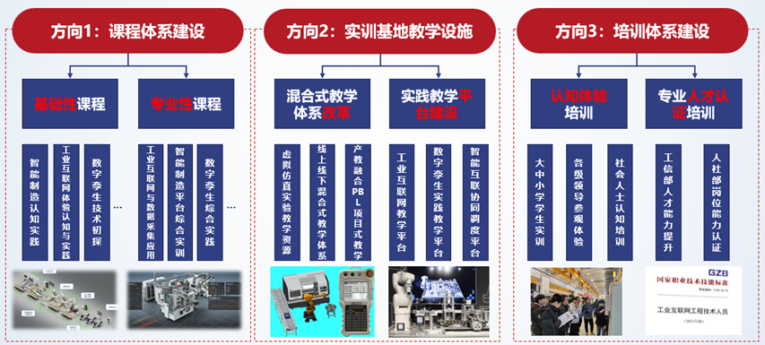 此外,實訓基地還將進一步完善實訓基地教學設施,開展線上線下相結合的混合式教學體系改革。以工業互聯網、智能制造、數字孿生等作為主干課程,在實訓基地現有教學設施的基礎上,研發更多工業互聯網相關專用教學設施、設備,并開發相應的線上教學資源,形成虛擬仿真實驗教學能力、線上線下混合式教學能力和產教融合PBL項目式教學能力,最終建成全國領先、線上線下融合的工業互聯網人才培養體系。