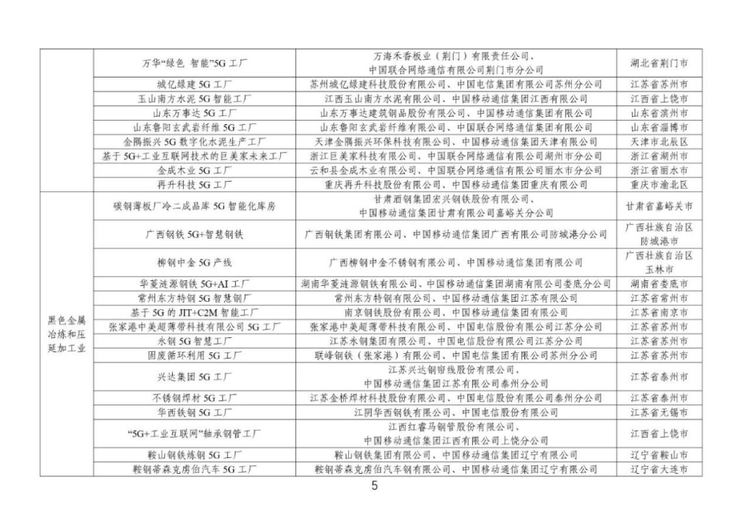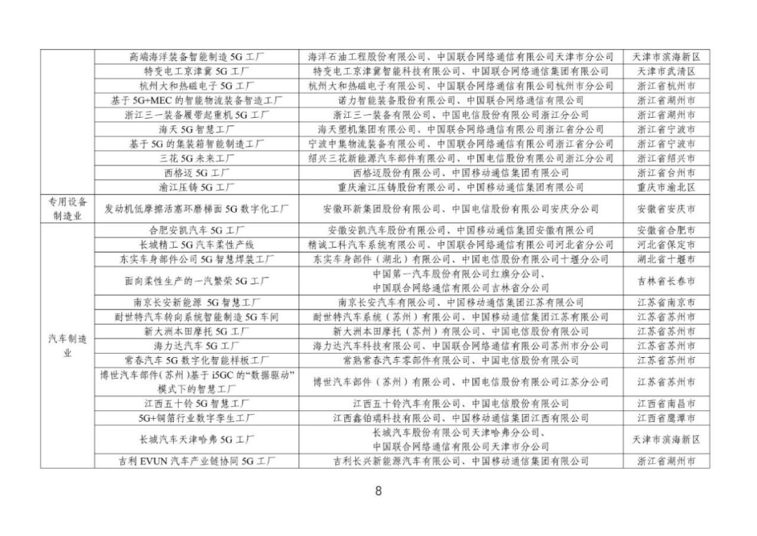 工業(yè)和信息化部信息通信管理局一級巡視員王鵬表示,目前全國“5G+工業(yè)互聯(lián)網(wǎng)”的項(xiàng)目數(shù)已經(jīng)超過8000個(gè),5G已經(jīng)由生產(chǎn)現(xiàn)場監(jiān)測、廠區(qū)智能物流等外圍輔助環(huán)節(jié),深入到遠(yuǎn)程設(shè)備操控、設(shè)備協(xié)同作業(yè)等核心控制環(huán)節(jié)。今年以來,工信部組織各地方積極推薦優(yōu)秀項(xiàng)目,經(jīng)過評審認(rèn)定和社會公示形成了《2023年5G工廠目錄》。王鵬介紹,從行業(yè)分布來看,《2023年5G工廠名錄》中收錄的5G工廠已經(jīng)廣泛覆蓋24個(gè)國民經(jīng)濟(jì)大類。從地域分布來看,名錄中的5G工廠分布在全國26個(gè)省、區(qū)、市,其中江蘇、山東、湖北、安徽、浙江、江西、天津、河北、遼寧、湖南、廣東等省市的5G工廠數(shù)量位居全國前10位。從企業(yè)的類型來看,名錄收錄了中央企業(yè)、國有企業(yè)、民營企業(yè)、外資企業(yè)、合資企業(yè)等各類市場主體,其中大型企業(yè)占比達(dá)到52.7%,中小企業(yè)也達(dá)到了47.3%,已經(jīng)形成大中小企業(yè)協(xié)同推進(jìn)的良好局面。從場景實(shí)踐來看,工信部前期已經(jīng)發(fā)布過“5G+工業(yè)互聯(lián)網(wǎng)”20大典型場景,樹立了一批“樣板間”,而在名錄中的300個(gè)5G工廠中,20個(gè)典型應(yīng)用場景的實(shí)踐均超過50%,形成了“商品房”的示范推廣效應(yīng)。從發(fā)展成效來看,據(jù)工業(yè)互聯(lián)網(wǎng)產(chǎn)業(yè)聯(lián)盟根據(jù)名錄當(dāng)中企業(yè)報(bào)送的數(shù)據(jù)來測算,300個(gè)5G工廠將帶動(dòng)總投資近百億元,對企業(yè)提質(zhì)降本增效、綠色安全發(fā)展等方面的促進(jìn)作用明顯。根據(jù)工業(yè)互聯(lián)網(wǎng)產(chǎn)業(yè)聯(lián)盟通過“5G工廠種子項(xiàng)目”統(tǒng)計(jì),截至今年9月,全國已有1800余個(gè)5G工廠項(xiàng)目,涉及29個(gè)省(區(qū)、市),已覆蓋裝備制造、電子設(shè)備制造、石化化工、港口等10個(gè)“5G+工業(yè)互聯(lián)網(wǎng)”重點(diǎn)行業(yè),以及有色金屬、材料等其他行業(yè),項(xiàng)目類型已包含產(chǎn)線、車間、工廠等各層級。