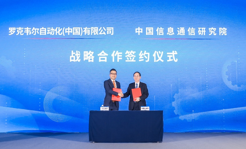 會上舉行了中國信息通信研究院與羅克韋爾自動化(中國)有限公司戰略合作簽約儀式,中國信通院院長余曉暉與羅克韋爾公司總裁石安代表雙方簽約。