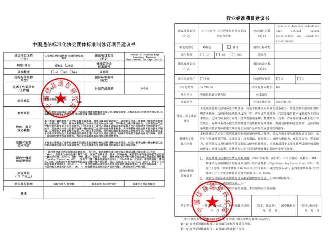 新型工控相關(guān)技術(shù)標(biāo)準(zhǔn)立項建議書
