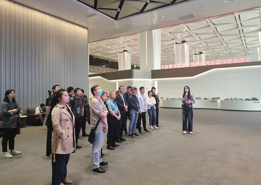 聯盟一行首先參觀了大族激光展廳,講解員介紹了公司的發展歷程,展示了大族激光器、激光打標、激光焊接、激光切割、激光鉆孔等設備的實際使用流程。專家們與講解員、大族相關人員進行了熱烈交流與討論。大族激光致力于智能制造裝備及其關鍵器件的研發、生產和銷售,具備從基礎器件、整機設備到工藝解決方案的垂直一體化能力,是全球領先的智能制造裝備整體解決方案服務商。