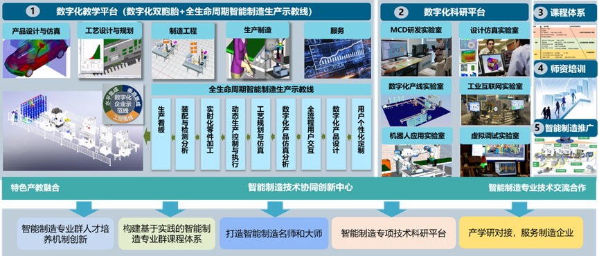 體系創新:首次提出四維專業課程體系,首創基于智能制造學習工廠的實踐體系,形成縱向有深度、橫向有廣度、虛實結合的理論與實踐教學架構;結合西門子、天拓四方等企業在工業互聯網方面的優勢,打造網絡協同制造軟件集群,并實現跨設備、跨系統的互聯互通,打造了科研、教學、展示、推廣于一體的網絡協同制造示范平臺。