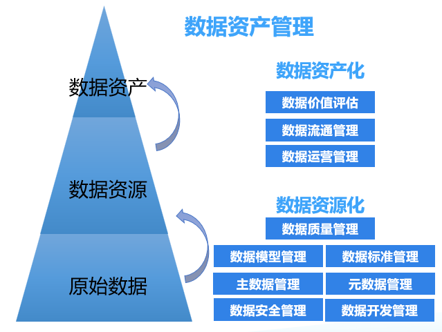 良好的數據資產管理是釋放數據要素價值、推動數據要素市場發展的前提與基礎。數據資產管理包括數據資源化、數據資產化兩階段。數據資源化通過將原始數據轉變數據資源,使數據具備一定的潛在價值,是數據的“開采和提純”階段也是數據資產化的必要前提;數據資產化通過將數據資源轉變為數據資產,使數據資源的潛在價值得以充分釋放,是數據的“蒸餾”階段。