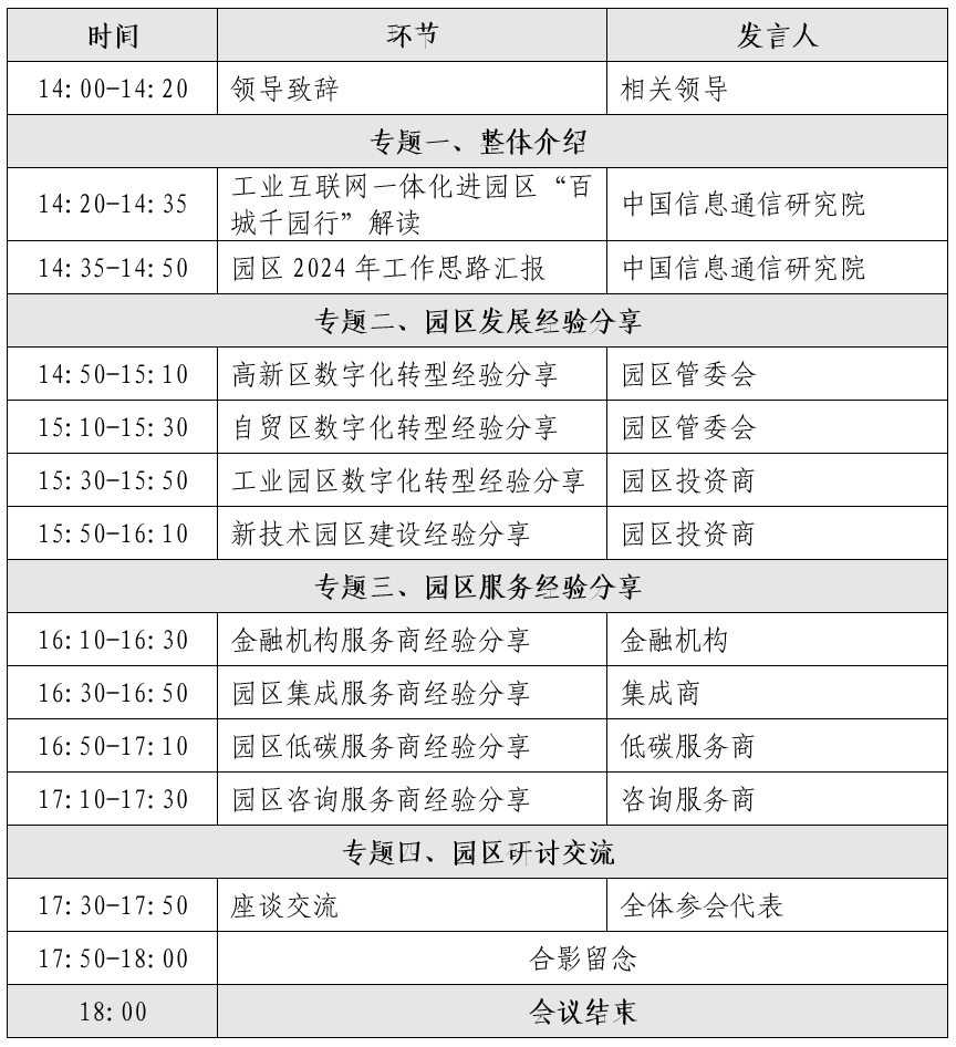 為貫徹落實《關于組織開展 2024 年工業互聯網一體化進園區“百城千園行”活動的通知》(工信廳信管函〔2024〕155 號)要求,面向高新技術產業開發區、經濟開發區等各級行政園區,以及先進制造業集群、中小企業特色產業集群等重點產業發展載體,推動工業互聯網高質量發展和規模化應用,發揮工業園區產業集聚優勢,推動工業互聯網向地市縣域落地普及,促進廣大企業特別是中小企業加快數字化轉型。工業互聯網產業聯盟經研究定于第二十五次工作組全會期間,啟動園區服務方陣建設工作,并組織召開“百城千園行”研討會。