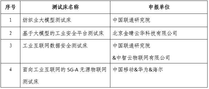 經(jīng)過(guò)組織專家對(duì)申報(bào)材料進(jìn)行篩選、評(píng)審,并在聯(lián)盟第二十五次工作組全會(huì)測(cè)試床組會(huì)議上確認(rèn),最終4項(xiàng)測(cè)試床通過(guò)立項(xiàng)評(píng)審。
