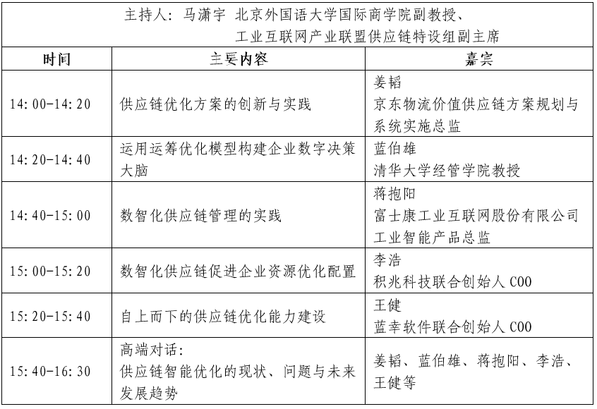 近年來,新一輪科技革命深入推進,以工業(yè)互聯(lián)網為載體,人工智能技術、運籌優(yōu)化算法等深度賦能供應鏈轉型升級,實現(xiàn)智能優(yōu)化。因此,工業(yè)互聯(lián)網產業(yè)聯(lián)盟聯(lián)合中國信息通信研究院、中國通信學會工業(yè)互聯(lián)網委員會、中國互聯(lián)網協(xié)會工業(yè)互聯(lián)網工作委員會、北京外國語大學、中國運籌學會數(shù)據科學與運籌智能分會(籌)共同舉辦“供應鏈智能優(yōu)化”專題科普講座,特邀京東物流價值供應鏈方案規(guī)劃與系統(tǒng)實施總監(jiān)姜韜、清華大學經管學院教授藍伯雄、富士康工業(yè)互聯(lián)網股份有限公司工業(yè)智能產品總監(jiān)蔣抱陽、積兆科技聯(lián)合創(chuàng)始人COO李浩、藍幸軟件聯(lián)合創(chuàng)始人COO王健等大咖專家齊聚上海,分享供應鏈智能優(yōu)化領域的寶貴知識和實踐經驗,助力廣大企業(yè)從數(shù)字化走向智能化。