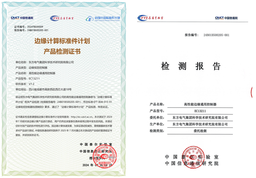 “邊緣計算標(biāo)準(zhǔn)件計劃”證書與檢測報告