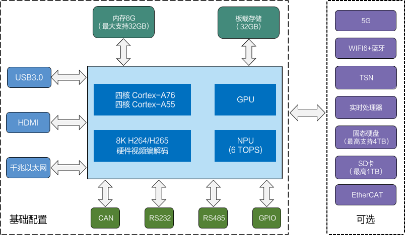 多核異構(gòu)架構(gòu),專核專用,兼顧視頻處理、AI推理、實(shí)時控制、TSN、5G通信等;