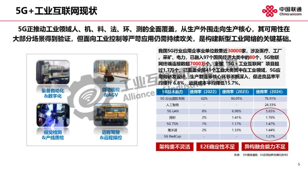 5G正推動工業領域人、機、料、法、環、測的全面覆蓋,從生產外圍走向生產核心,其可用性在大部分場景得到驗證,但面向工業控制等嚴苛應用仍需持續攻關,是構建新型工業網絡的關鍵基礎。