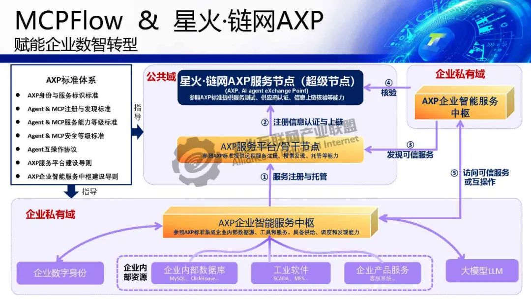 賀松介紹,基于MCP協(xié)議的AI落地解決方案,解決企業(yè)數(shù)字化轉(zhuǎn)型兩大痛點:1)業(yè)務(wù)語境缺失——通過標(biāo)準(zhǔn)化接口注入訂單狀態(tài)、客戶信息等上下文,使大模型精準(zhǔn)理解業(yè)務(wù)語義;2)數(shù)據(jù)孤島問題——MCPFlow平臺集成ERP、CRM等系統(tǒng)工具鏈,實現(xiàn)"搭積木式"AI服務(wù)調(diào)用,將開發(fā)周期縮短70%。結(jié)合中國信通院"星火鏈網(wǎng)"構(gòu)建可信AI智能體交換中心(ASP),確保內(nèi)外數(shù)據(jù)安全互通。該方案推動大模型從概念走向業(yè)務(wù)控制,實現(xiàn)人機(jī)協(xié)同決策,形成開放AI生態(tài)
