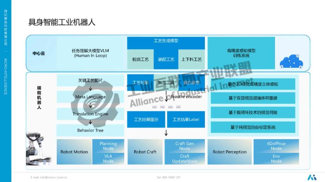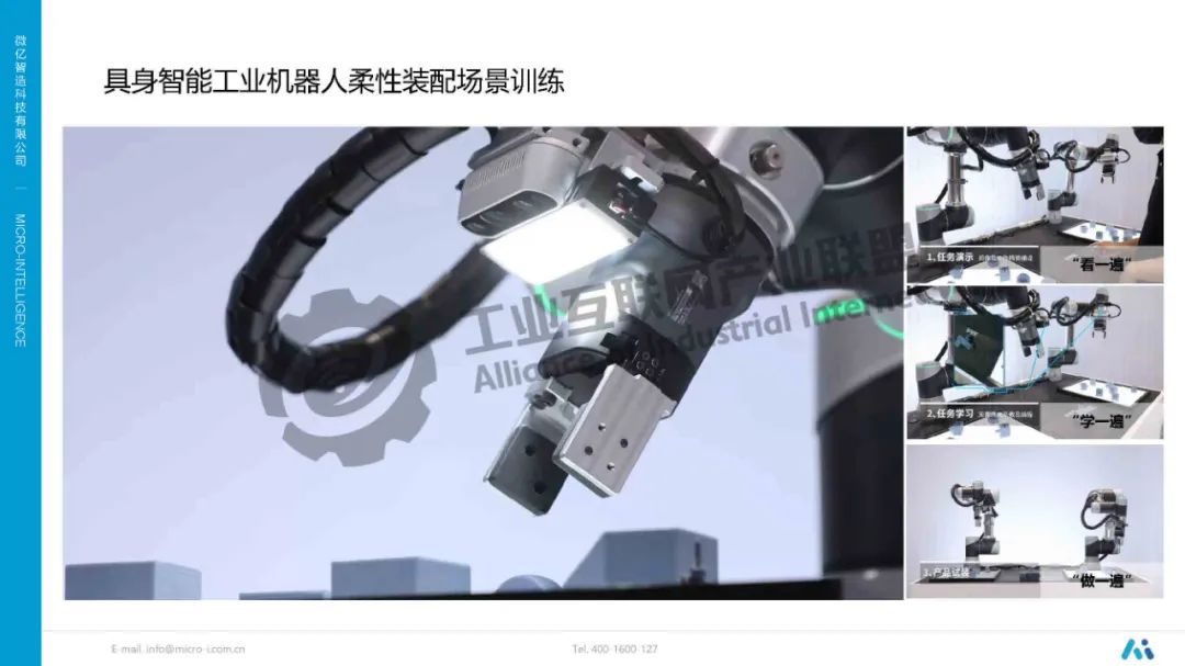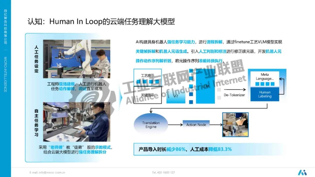 AI構建具身機器人強任務學習能力,進行流程拆解,通過finetune工藝VLM模型實現關鍵幀拆解和機器人元語生成。引入人工判別和標注進行修正該元語,開發機器人元操作動作序列解析器,將元操作序列準確轉換執行。