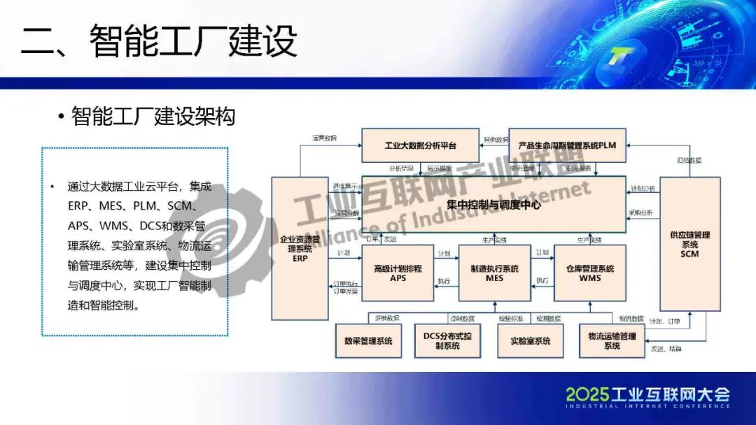 智能工廠建設架構是通過大數據工業云平臺,集成ERP、MES、PLM、SCM、APS、WMS、DCS和數采管理系統、實驗室系統、物流運輸管理系統等,建設集中控制與調度中心,實現工廠智能制造和智能控制。