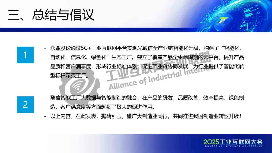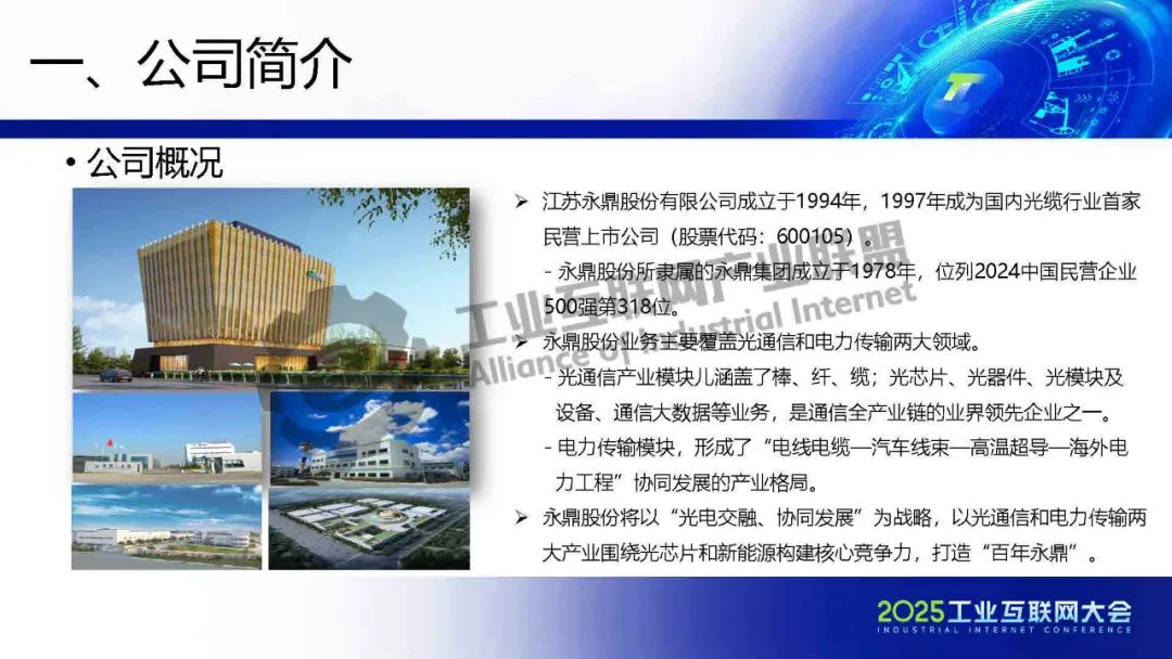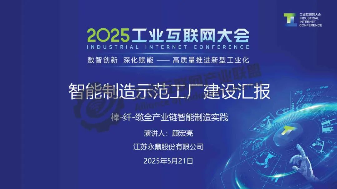 5月21日,在2025工業互聯網大會“工業互聯網數智融合創新發展專題活動”上,永鼎股份光棒、光纖公司副總經理顧宏亮發表了《智能制造示范工廠建設匯報:棒纖纜全產業鏈智能制造實踐》的主題演講。