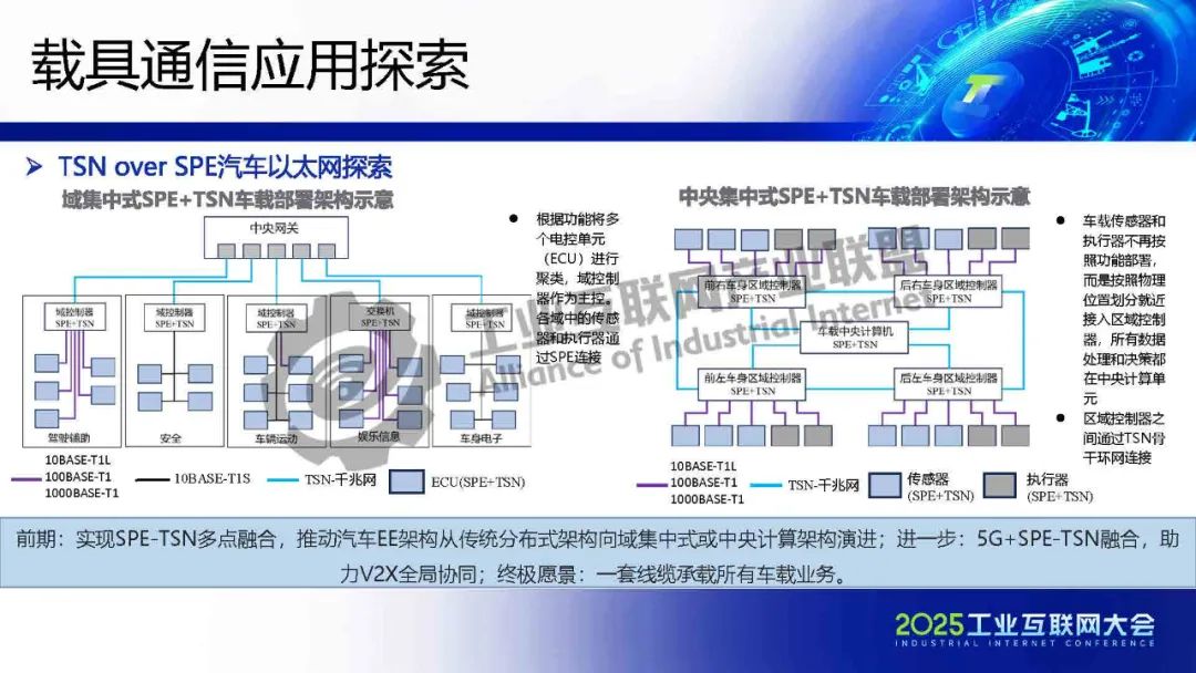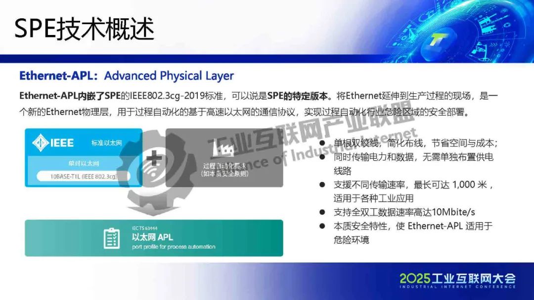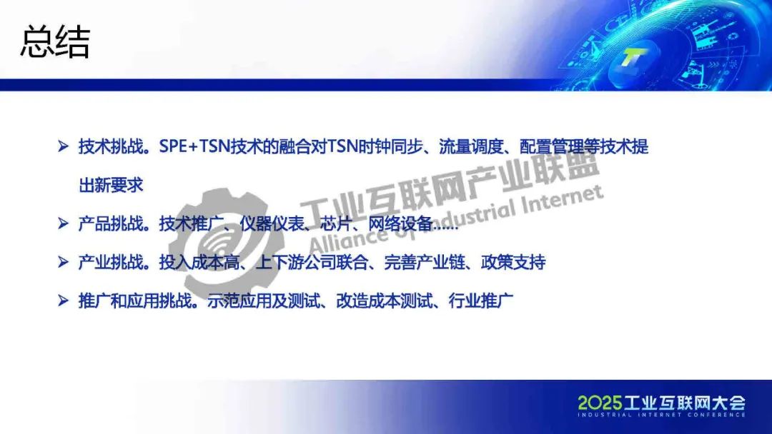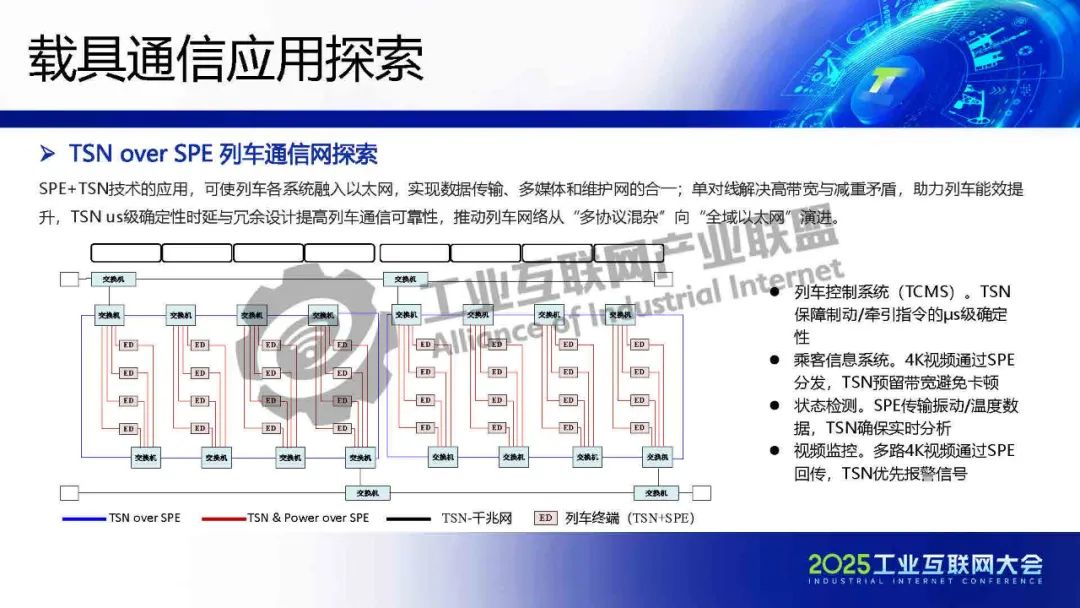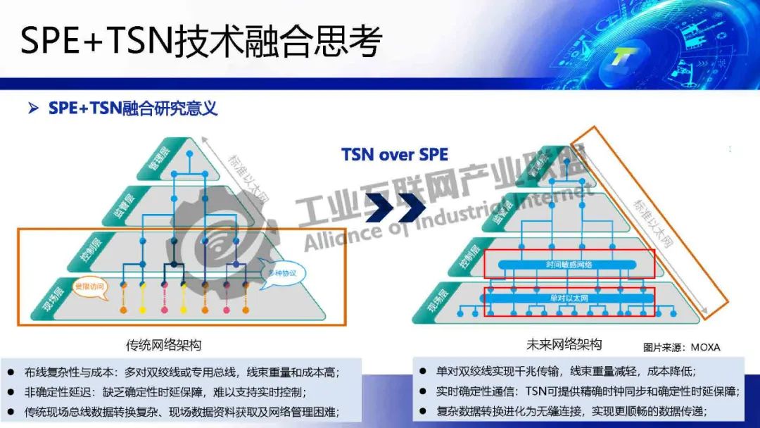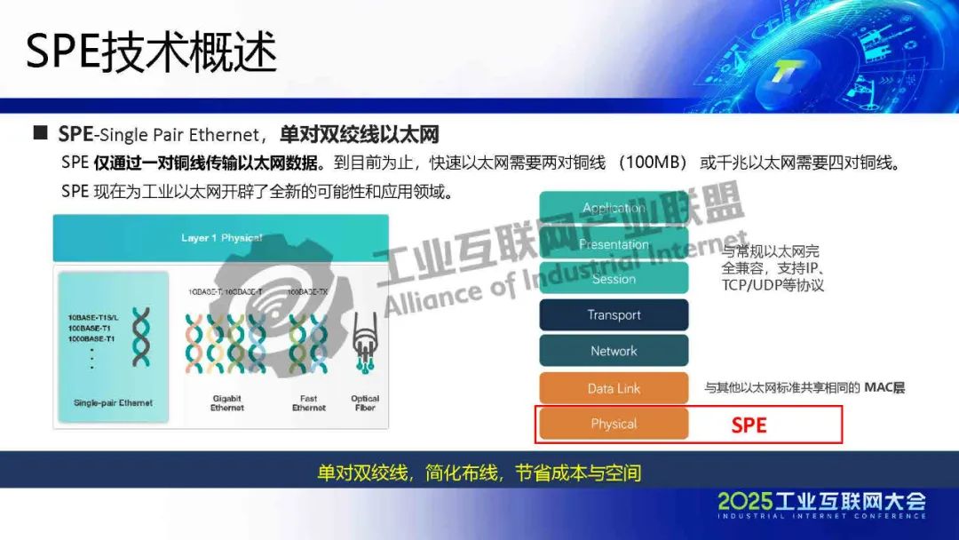 李慶介紹,TSN 提供確定性低時(shí)延通信保障,為各類系統(tǒng)建立統(tǒng)一的工業(yè)骨干網(wǎng)絡(luò)。SPE將以太網(wǎng)覆蓋范圍擴(kuò)展至現(xiàn)場層,實(shí)現(xiàn)設(shè)備全連接,構(gòu)建起真正統(tǒng)一的工業(yè)網(wǎng)絡(luò)。SPE+TSN的融合可降低布線成本、簡化設(shè)備聯(lián)網(wǎng)架構(gòu),為未來各行業(yè)智能化、實(shí)時(shí)化通信提供新的技術(shù)路徑。
