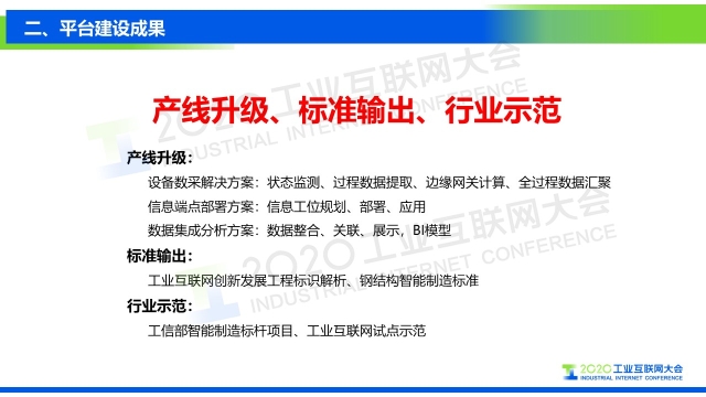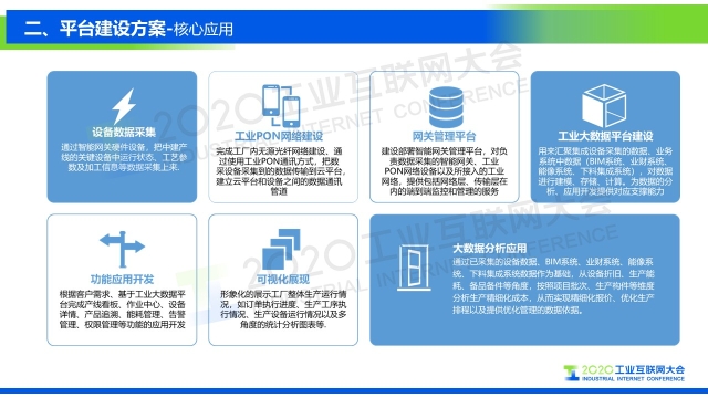 點擊下方鏈接回看演講視頻: 專家說 “中建科工根據'數字化、信息化、智能化'的設計理念,充分利用工業PON網絡、智能生產管理系統、工業大數據平臺等先進技術,構建基于云架構的大數據分析平臺。通過建立工業互聯網大數據分析平臺,進行數據采集、分析、決策,優化提升可制造性和可服務性,形成企業智能管控閉環,提高生產效率,降低運營成本。” 以下是演講PPT 敬請閱讀