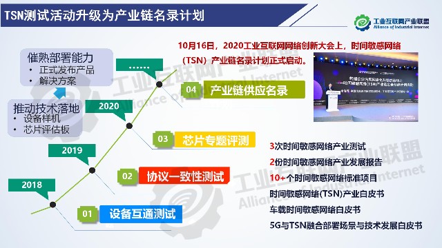 聯盟網絡組聯執主席、中國信通院技術與標準研究所副主任張恒升就時間敏感網絡(TSN)產業鏈名錄框架文件發布作主題演講,正式向產業界發布三份產業鏈名錄計劃框架文件——產業鏈名錄支撐單位矩陣、產業鏈名錄產品分類目錄及產業鏈名錄產品信息模板,解讀產業鏈名錄框架文件編寫原則及整體思路,介紹下一步工作計劃。(文末附演講材料)