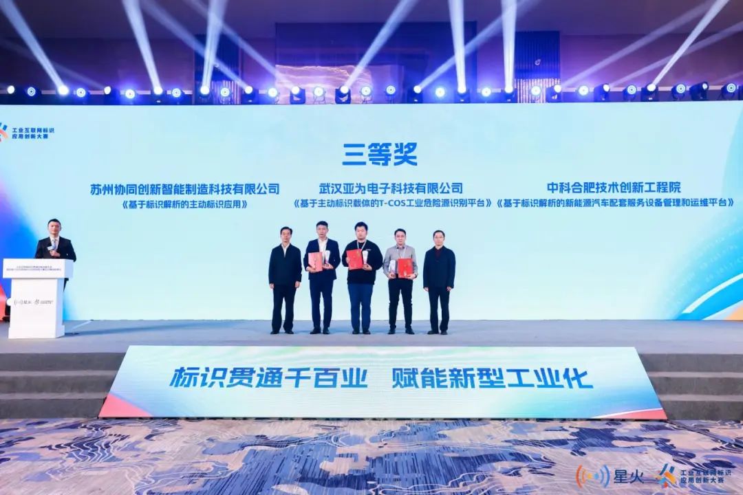 江蘇中天互聯(lián)科技有限公司的《基于標識解析的企業(yè)節(jié)點集成創(chuàng)新應用》從此次大賽的292個項目中脫穎而出,獲得一等獎;網(wǎng)絡通信與安全紫金山實驗室的《基于標識檢索的輪轂生產全流程一體化解決方案》,上海至數(shù)企業(yè)發(fā)展有限公司的《基于工業(yè)互聯(lián)網(wǎng)主動標識的醫(yī)療設備智慧管理平臺》獲此次大賽二等獎;蘇州協(xié)同創(chuàng)新智能制造科技有限公司的《基于標識解析的主動標識應用》,武漢亞為電子科技有限公司的《基于主動標識載體的T-Cos工業(yè)危險源識別平臺》,中科合肥技術創(chuàng)新工程院的《基于標識解析的新能源汽車配套服務設備管理和運維平臺》獲三等獎。