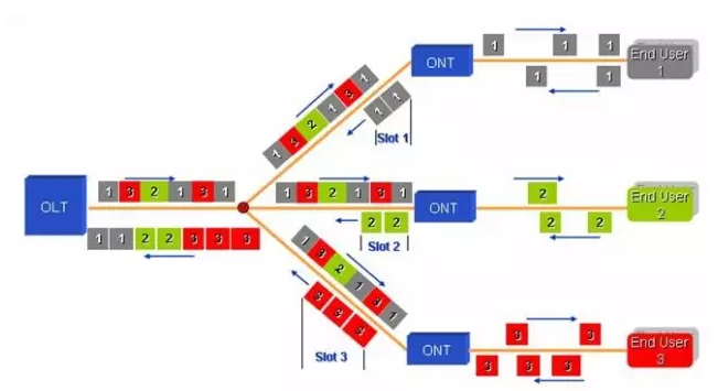 承載以太網數據包,下行采用點對多點廣播方式(TDM),上行采用時分多址接入技術(TDMA );每個ONU需向OLT安全注冊;