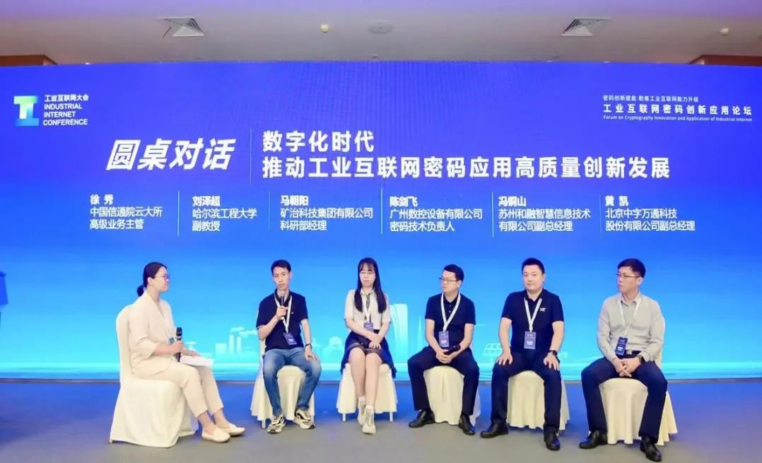 圓桌對話環(huán)節(jié)由中國信息通信研究院云計算與大數(shù)據(jù)研究所高級業(yè)務(wù)主管徐秀主持。五位嘉賓圍繞“數(shù)字化時代,推動工業(yè)互聯(lián)網(wǎng)密碼應(yīng)用高質(zhì)量創(chuàng)新發(fā)展”展開交流。哈爾濱工業(yè)大學(xué)副教授劉澤超表示 “工業(yè)互聯(lián)網(wǎng)安全包括設(shè)備安全、接入安全、平臺安全和數(shù)據(jù)安全。各層次的安全研究都需要進(jìn)一步與行業(yè)結(jié)合,深度融合才能發(fā)揮密碼的價值?!瘪R朝陽提到“對于工業(yè)互聯(lián)網(wǎng)在傳統(tǒng)產(chǎn)業(yè)設(shè)備平臺中的推廣與適配,需要典型的成果案例和激勵機(jī)制促進(jìn)行業(yè)的正向發(fā)展循環(huán)”;陳劍飛提出“廣州數(shù)控爭取樹立典范,給下游的產(chǎn)業(yè)、集成商和合作伙伴對接業(yè)務(wù)信息系統(tǒng),給終端客戶做好普及推廣”;蘇州和融智慧信息技術(shù)有限公司副總經(jīng)理馮銅山提到“當(dāng)前密碼的發(fā)展需要業(yè)務(wù)與數(shù)據(jù)層面的深度融合,但依舊存在數(shù)據(jù)能否上云、產(chǎn)品延時影響效率等問題亟待解決”;北京中宇萬通科技股份有限公司副總經(jīng)理黃凱“企業(yè)核心的數(shù)據(jù)資產(chǎn)的保護(hù),例如重要的工業(yè)敏感數(shù)據(jù)的全生命周期的管理和使用安全是未來需要重點(diǎn)關(guān)注的問題”。