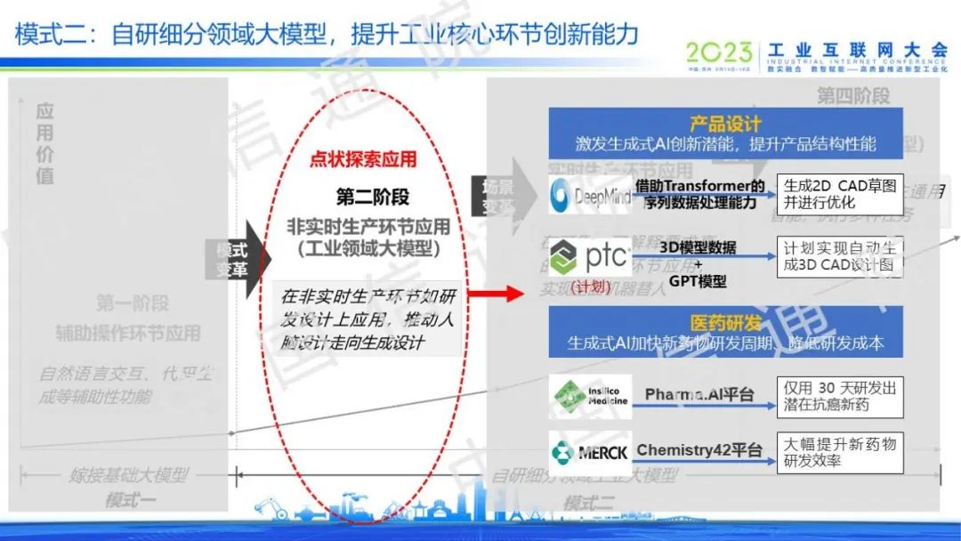 以自研細(xì)分領(lǐng)域大模型為主的模式二已在設(shè)計(jì)研發(fā)環(huán)節(jié)實(shí)現(xiàn)初步應(yīng)用。產(chǎn)品設(shè)計(jì)場景可基于生成式AI的創(chuàng)新能力實(shí)現(xiàn)產(chǎn)品結(jié)構(gòu)性能提升;醫(yī)藥研發(fā)場景可基于生成式AI加快新藥物研發(fā)效率。