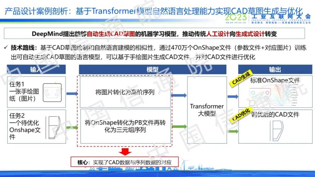 以產(chǎn)品設(shè)計(jì)場景為例,通過利用Transformer模型的自然語言處理能力提升研發(fā)效率。其本質(zhì)是將輸入的CAD數(shù)據(jù)轉(zhuǎn)化為序列數(shù)據(jù)以充分適配Transformer模型,通過構(gòu)建研發(fā)領(lǐng)域大模型實(shí)現(xiàn)CAD圖像生成與優(yōu)化功能,這意味著傳統(tǒng)人工設(shè)計(jì)正加速向生成式設(shè)計(jì)轉(zhuǎn)變。