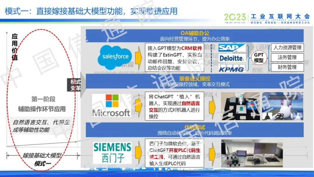 以直接嫁接基礎(chǔ)大模型功能為主的模式一是利用基礎(chǔ)大模型的自然語言理解、代碼生成等能力,實(shí)現(xiàn)OA輔助辦公、裝備語義操控和代碼調(diào)試等探索應(yīng)用,但均已提升效率為主,尚未觸及工業(yè)核心環(huán)節(jié)。