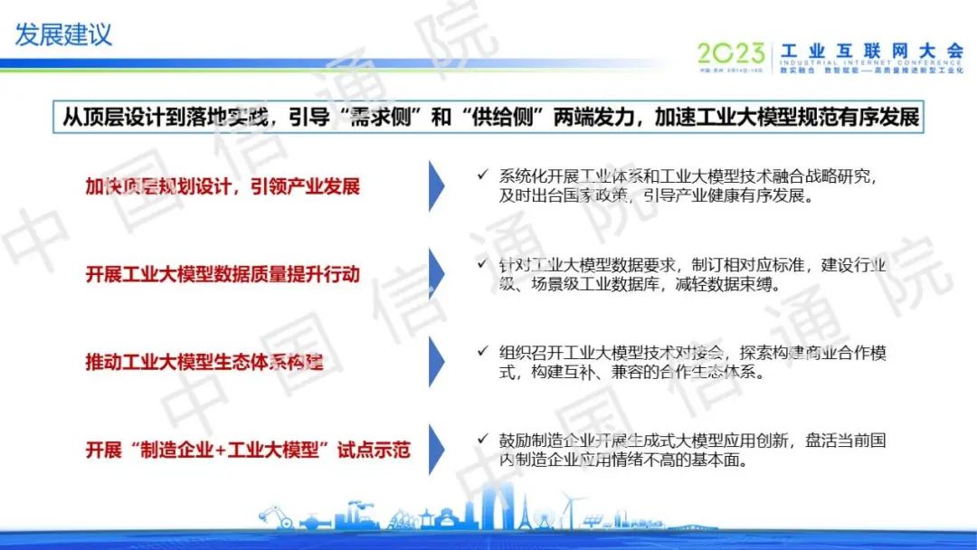 工業(yè)大模型的發(fā)展過程中面臨著數(shù)據(jù)、產(chǎn)業(yè)、技術(shù)三大挑戰(zhàn),亟需從頂層設(shè)計(jì)到落地實(shí)踐提出發(fā)展策略,引導(dǎo)“需求側(cè)”和“供給側(cè)”兩端發(fā)力,加速工業(yè)大模型規(guī)范有序發(fā)展。